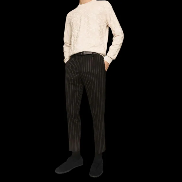 - pantalon skinny en laine à fines rayures