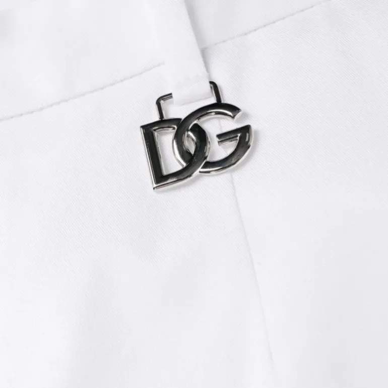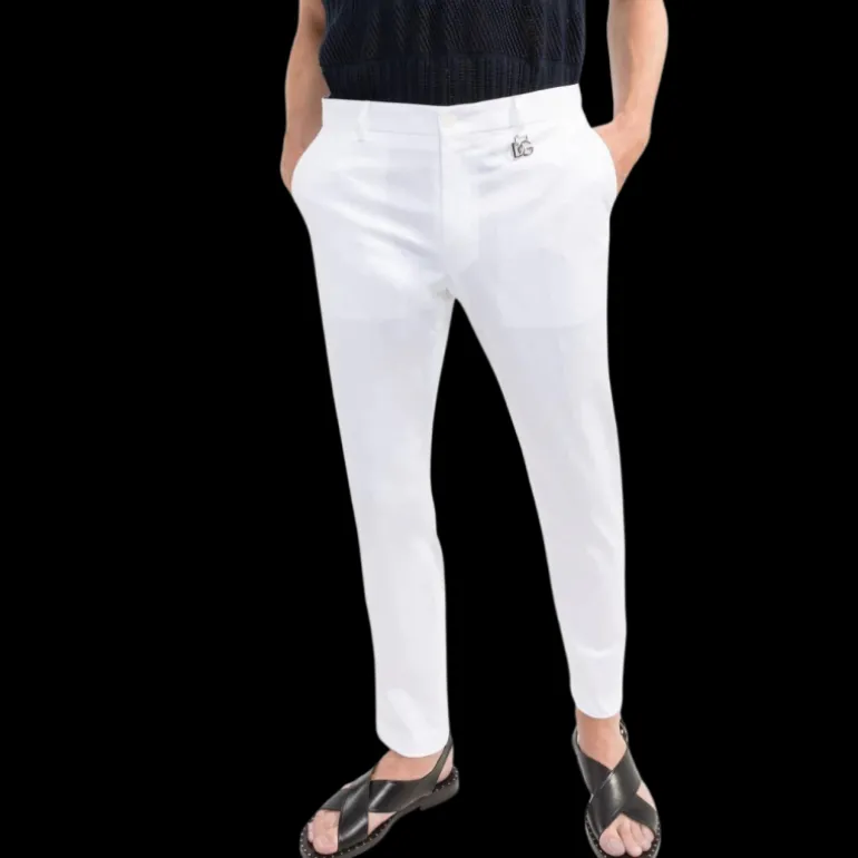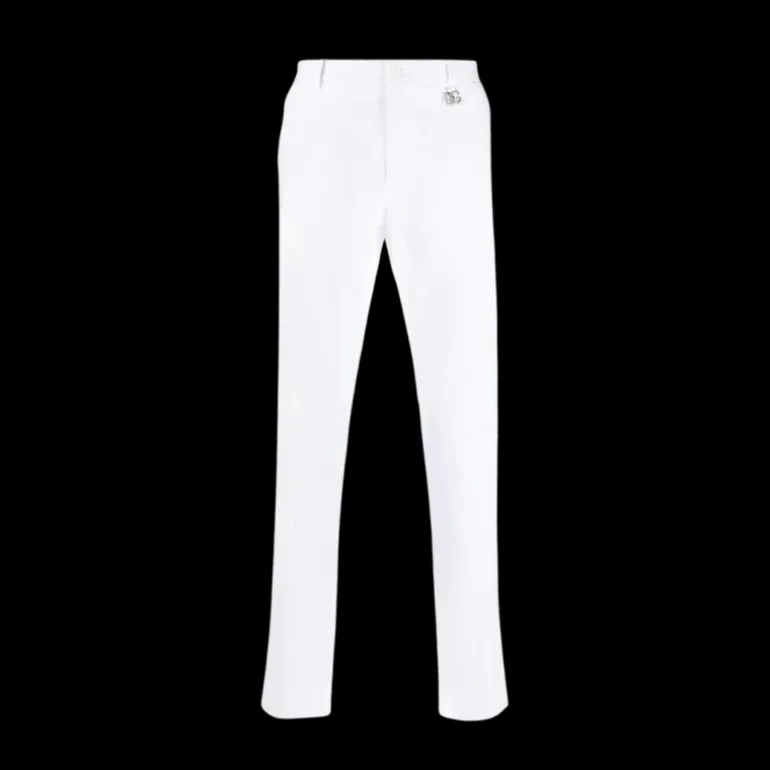 pantalon slim costume quatre poches coton stretch blanc cassé logo DG argent