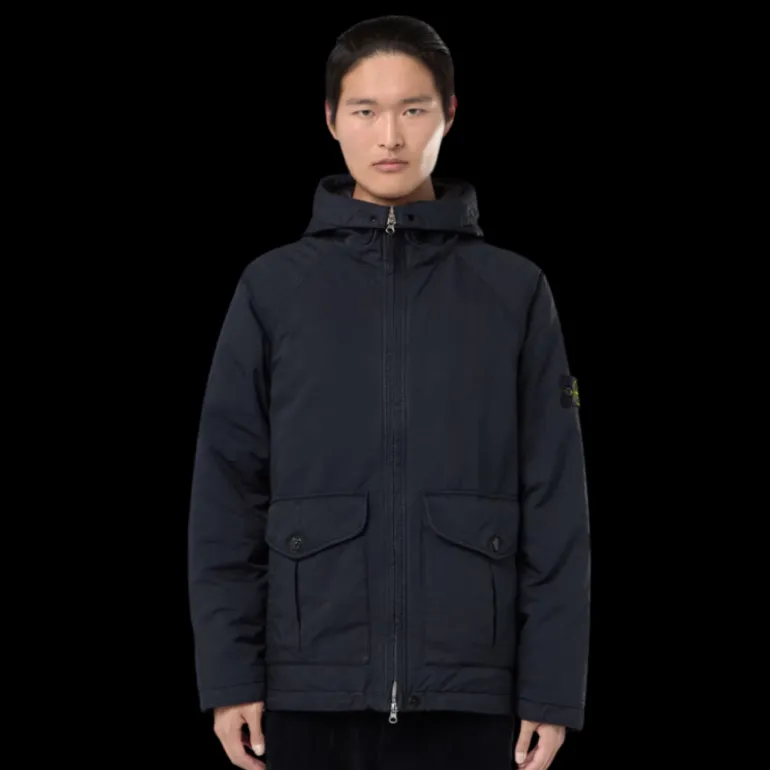 Capuche à cordon de serrage fixée par bouton-pression avec rabat coupe-vent à surpiqûres et broderie centrale de la petite étoile Stone Island. Manches raglan. Deux jeux de poches plaquées à soufflets avec rabat et fermeture par bouton, ainsi qu’une ouverture droite sur les côtés. Écusson Stone Island sur la manche gauche. Bouton de serrage aux poignets. Cordon de serrage sur l’ourlet du bas. Fermeture zippée à double curseur.