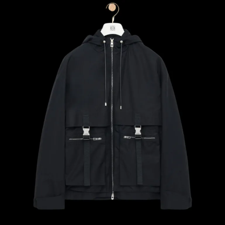 Parka zippée coton compact déperlant noir capuche poches