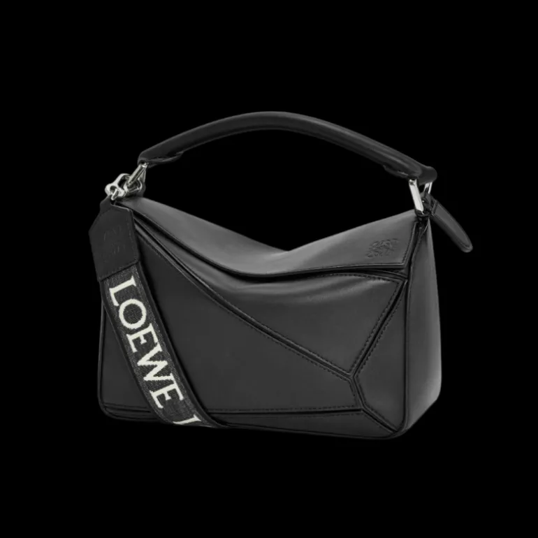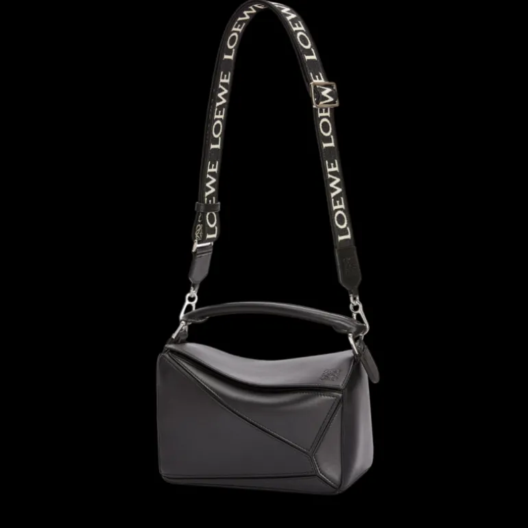 Le sac Puzzle est le premier sac pour LOEWE par le directeur créatif Jonathan Anderson. Une forme cuboïde et une technique de coupe précise créer les lignes géométriques distinctives de Puzzle. Cette petite version est confectionnée en cuir de veau satiné et s’accompagne d’une bandoulière amovible en jacquard LOEWE.