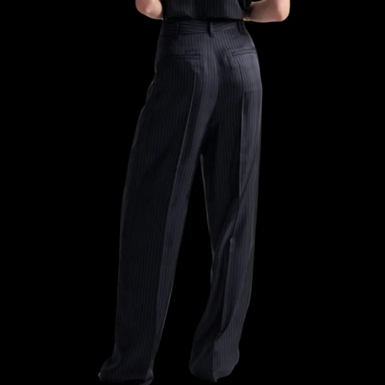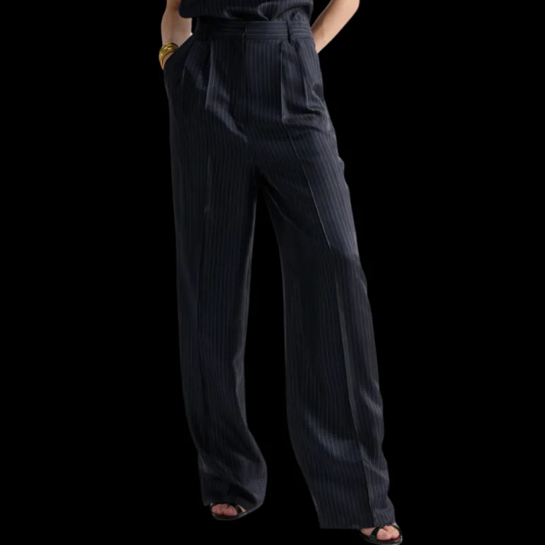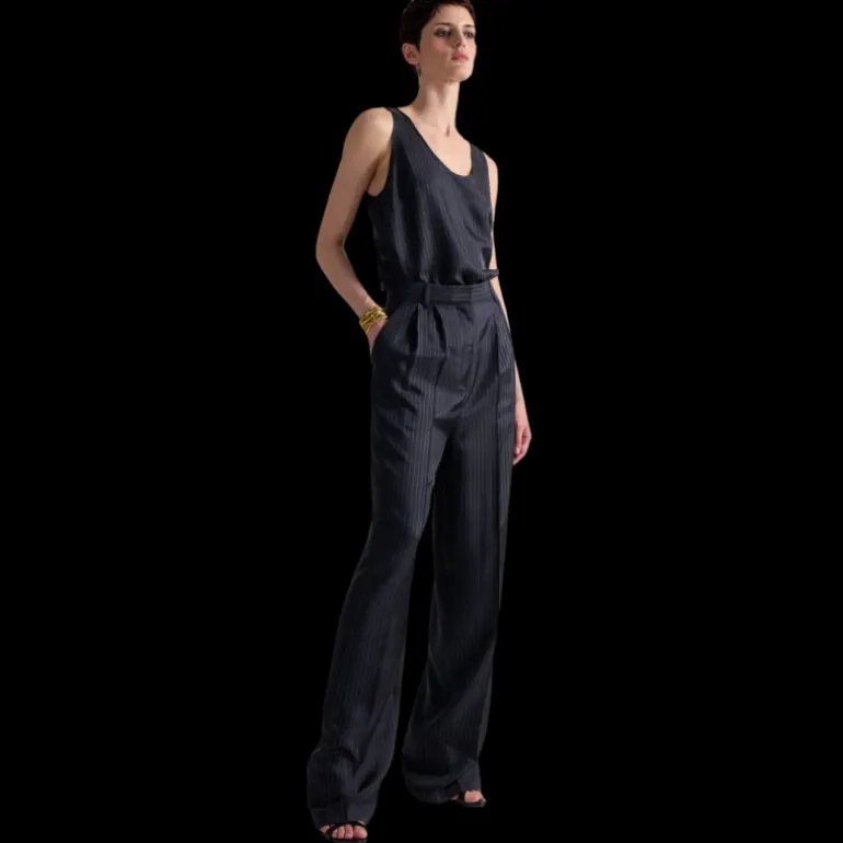 Pantalon à plis twill soie bleu marine rayures tennis