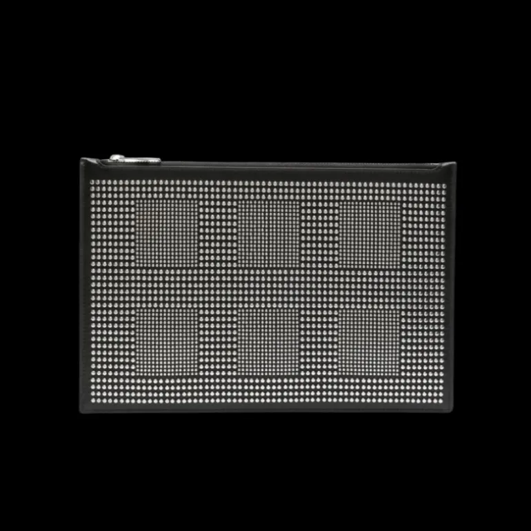 Pochette Tablette Snatched cuir veau noir clous