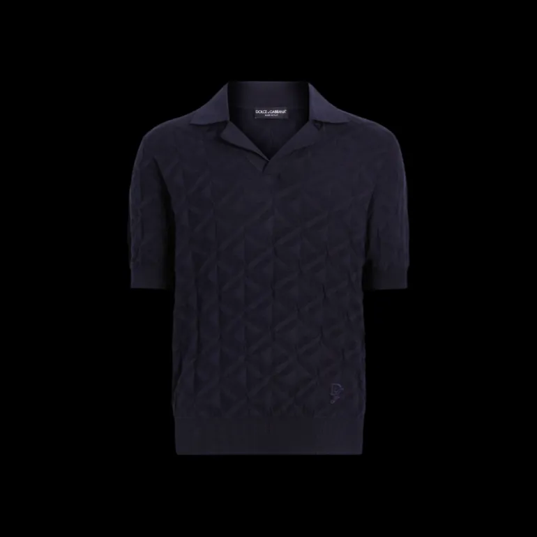 Polo en soie à motif losanges avec broderie du logo DG ton sur ton :