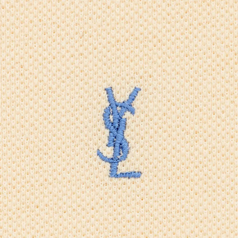 polo à manches courtes en polyester recyclé, orné du cassandre brodé sur la poitrine.