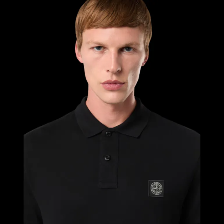 Col côtelé. Col fermé par deux boutons. Écusson à logo Rose des Vents Stone Island sur la poitrine. Manches à bordure côtelée. Fentes latérales au niveau de l’ourlet avec appliqué ruban à rayures à l’intérieur. Coupe slim.