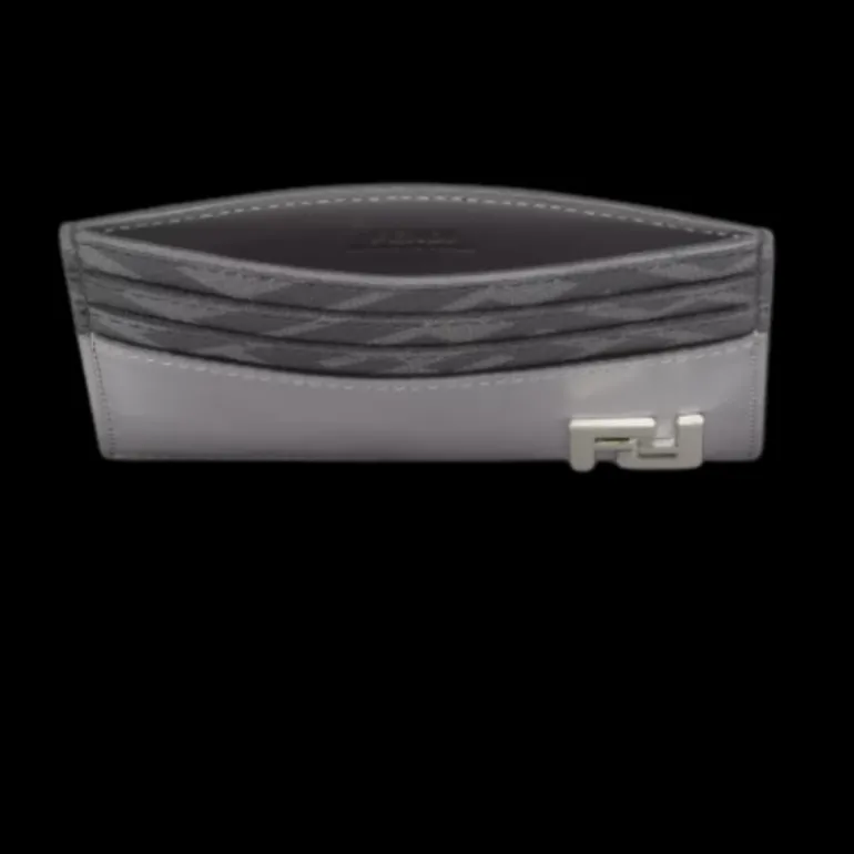Porte-cartes avec six fentes et une poche centrale plaquée. En cuir gris, détails en toile FF noire. Motif Squared FF en métal finition palladium.