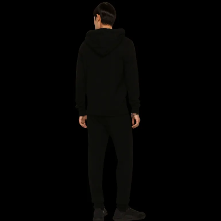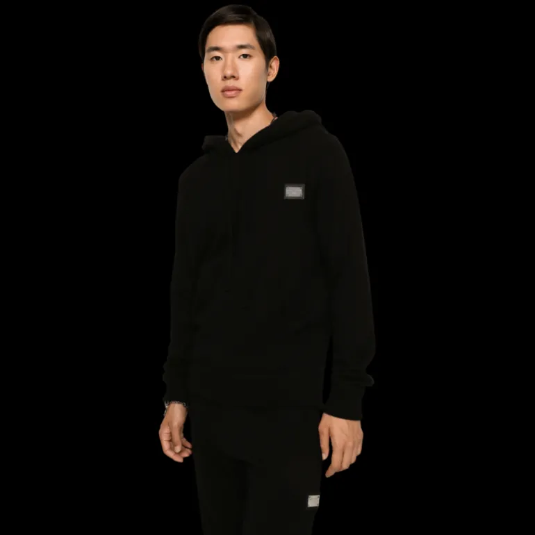 Pull à capuche en laine et cachemire noir plaque logo métal