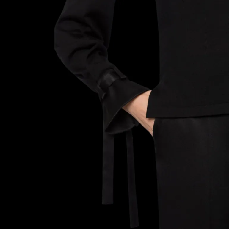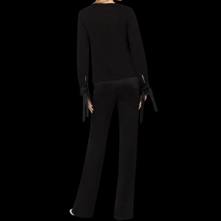 Pull col bateau laine vierge noir ruban satin manche