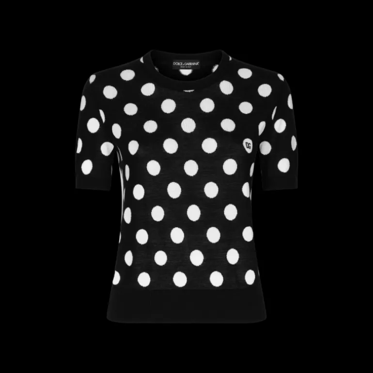 PULL EN LAINE ET SOIE AVEC INCRUSTATION À POIS
