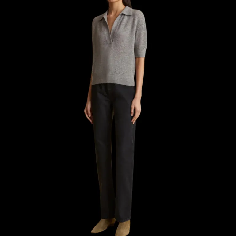 Ce polo à col ouvert est une version réduite du pull Jo bien-aimé, avec un col plus compact et des manches jusqu’aux coudes. La silhouette à la fois décontractée et féminine, avec ses coutures d’épaules descendues, met en valeur la texture moelleuse du cachemire léger. La bordure côtelée met en valeur l’encolure, les poignets et l’ourlet.