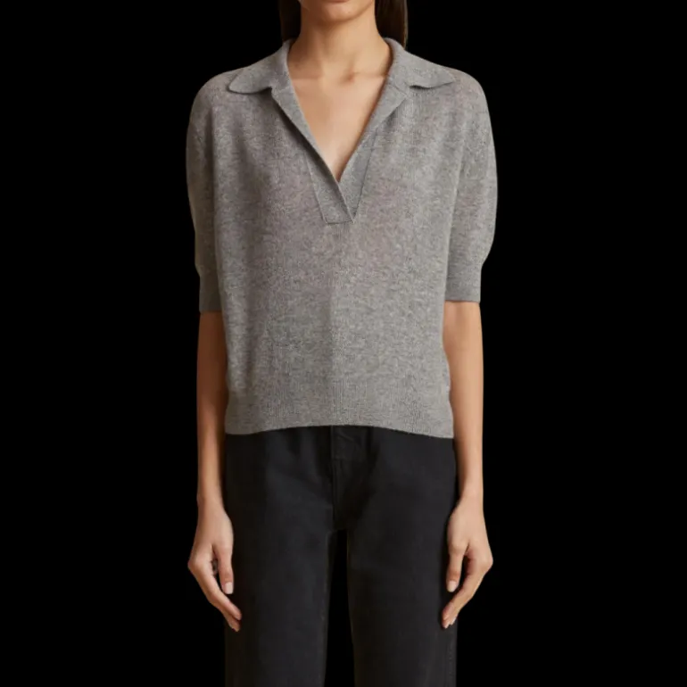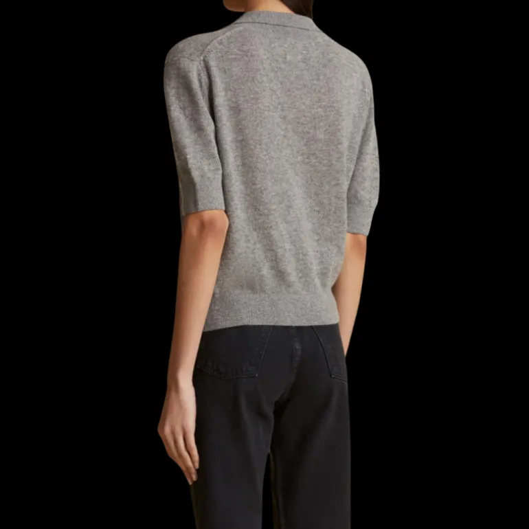 Pull Shrunken col polo manche courte cachemire gris