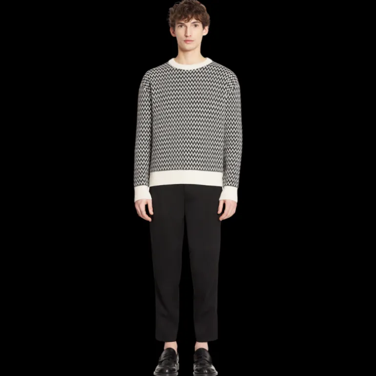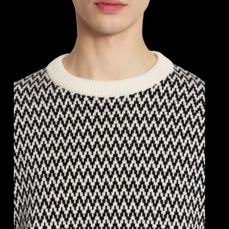 Pull col rond laine jacquard motif chevron Curb noir blanc