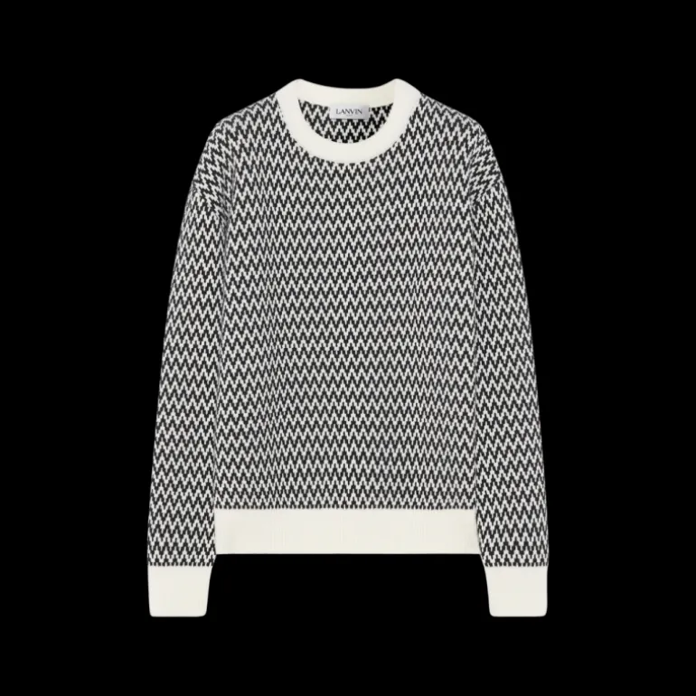 Ce pull en tricot jacquard a été développé en exclusivité pour Lanvin avec l’emblématique motif des lacets « CURB ».