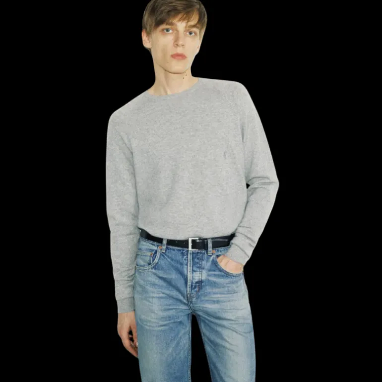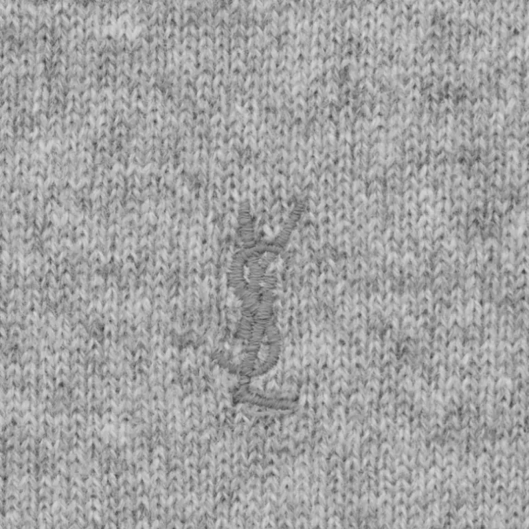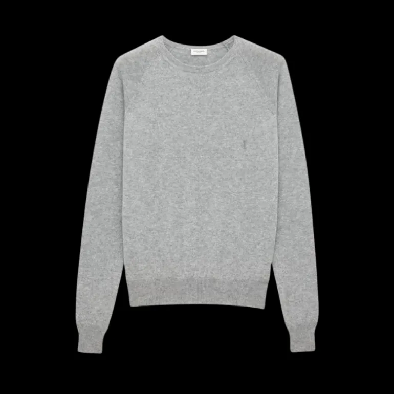 Pull Cassandre col rond cachemire gris clair logo YSL