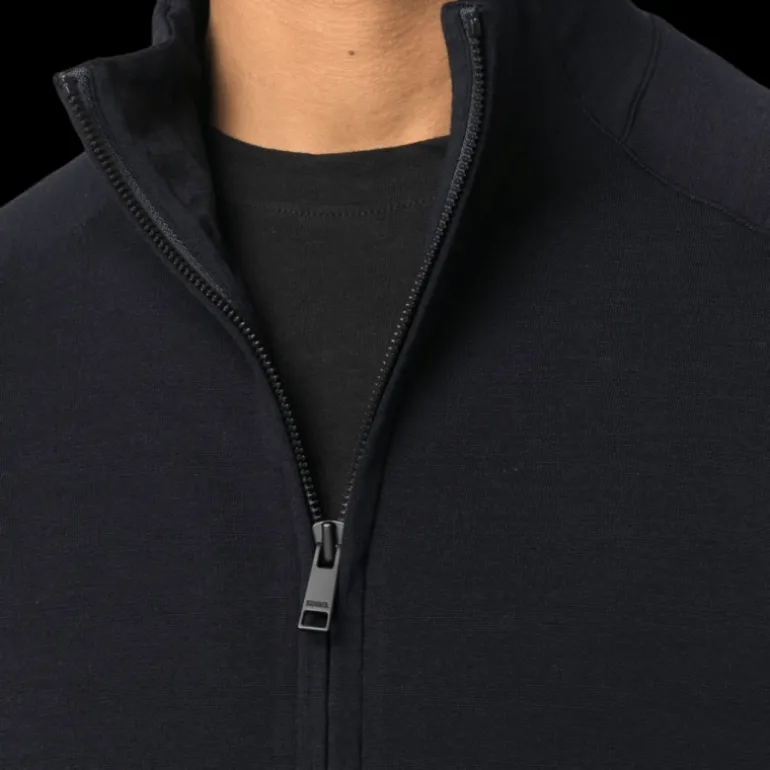 Pull zippé laine fine bleu marine