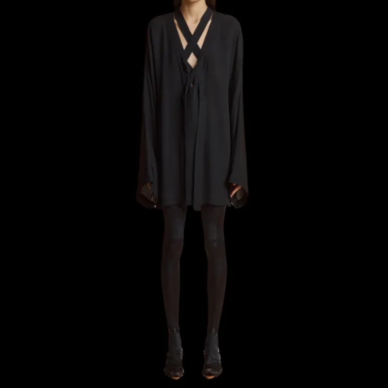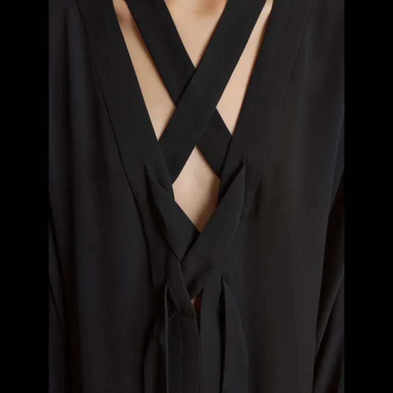 Robe Mehna liquette soie crêpe Georgette noir lien cravate