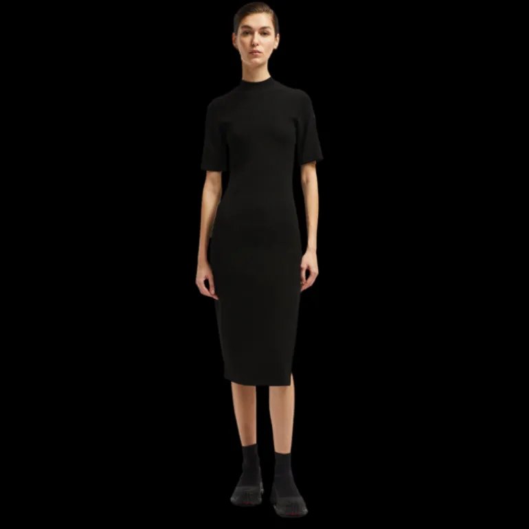Conçue en tissu doux qui s’adapte parfaitement à votre morphologie, cette robe incarne un esprit résolument féminin. Ce modèle en viscose stretch présente un col montant et une fente latérale.