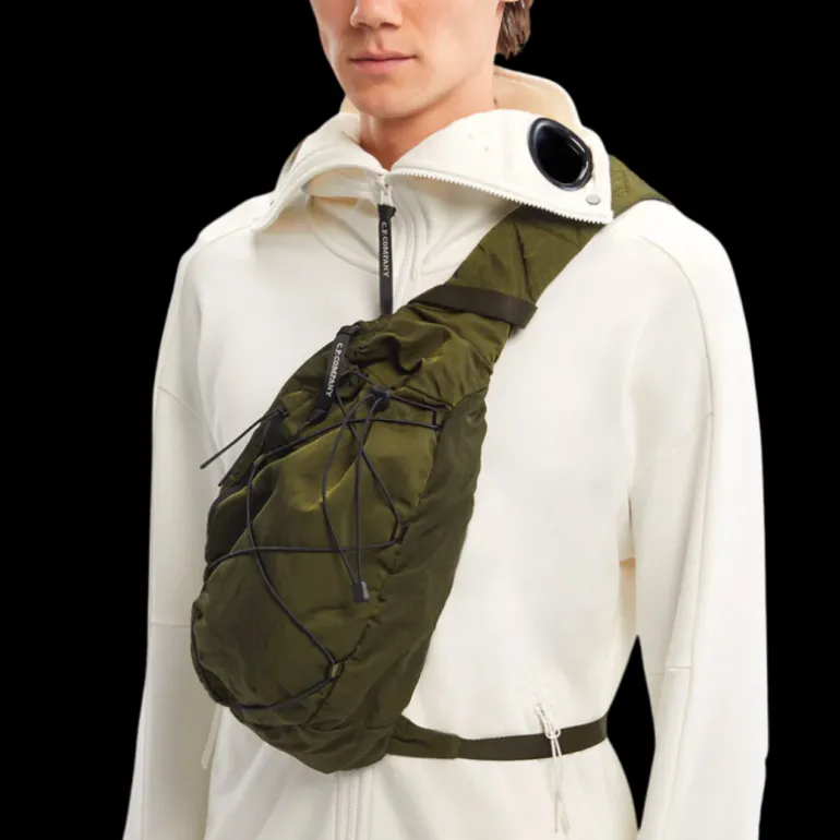 Sac à dos à fermeture à l’avant avec une sangle rembourrée réglable, des compartiments zippés sécurisés et des ajusteurs de cordon élastique et une lentille CP Company. Fabriqué en nylon B, un tissage durable et résistant à l’eau, spécialement conçu pour la teinture en vêtement, offrant une profondeur et une intensité chromatiques accrues tout au long de la pièce.
