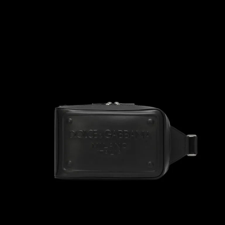Sac banane en cuir de veau avec logo Dolce&Gabbana Milano effet 3D sur l’étiquette :