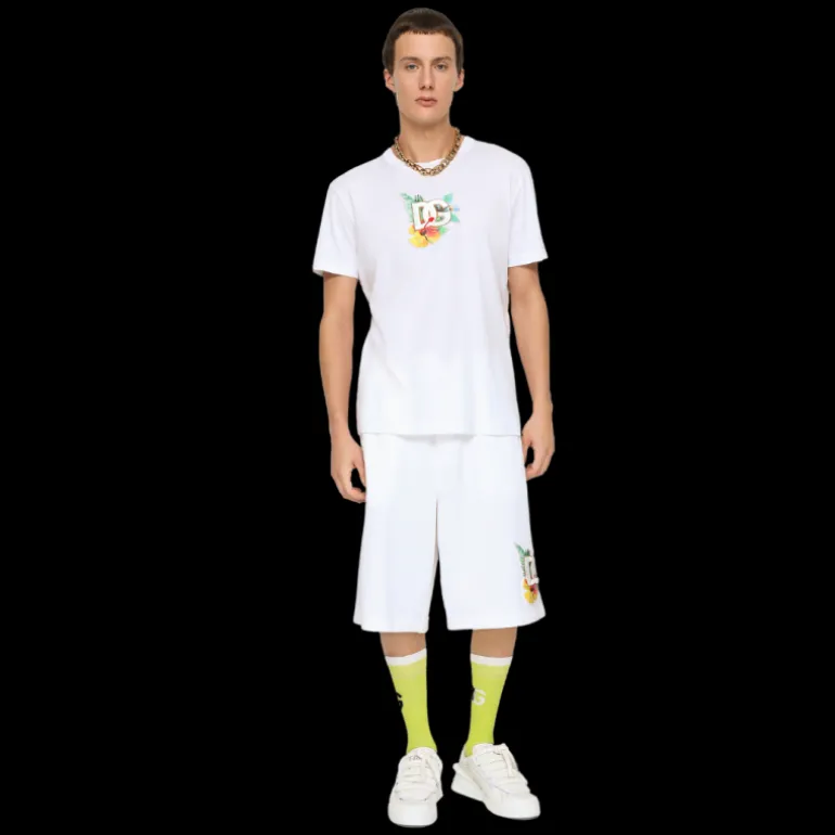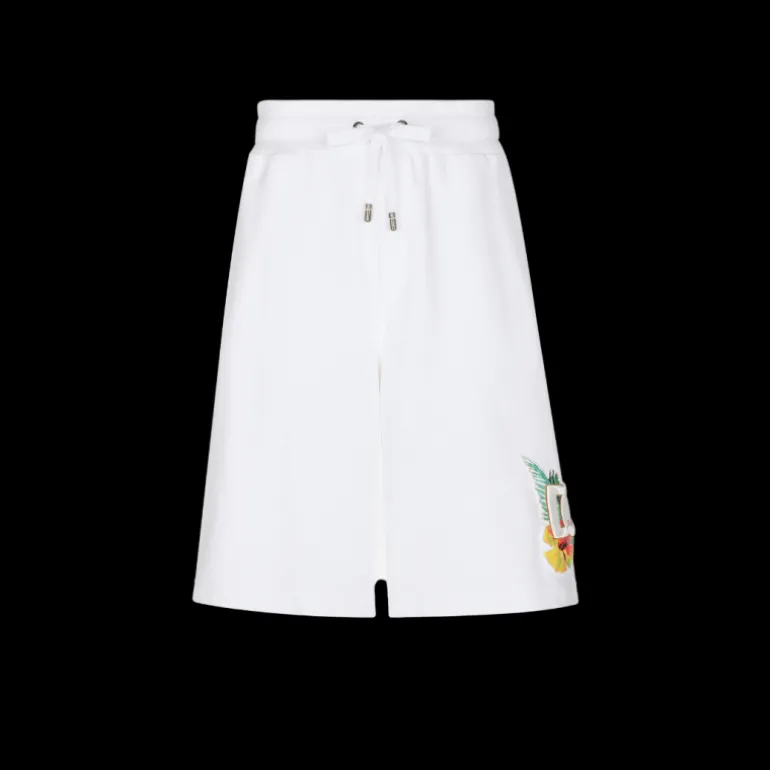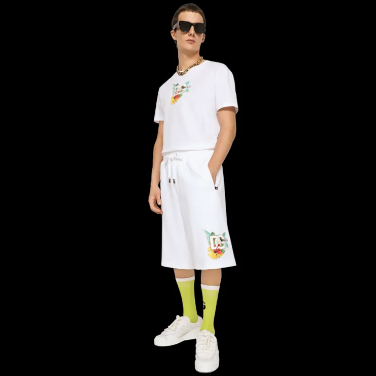 Short jogging jersey coton blanc imprimé hawaïen fleurs broderie DG