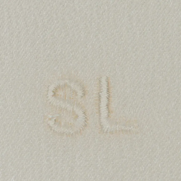 pochette de costume avec bordure lisse et broderie sl sur le coin, en soie biologique.