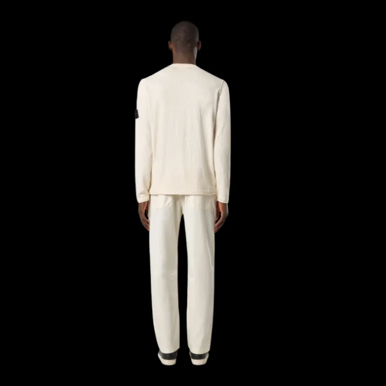 Pull ras-du-cou en coton biologique et en nylon. Point jersey. Jauge 14.