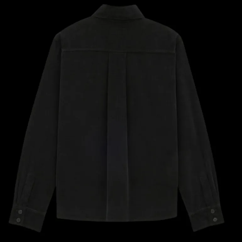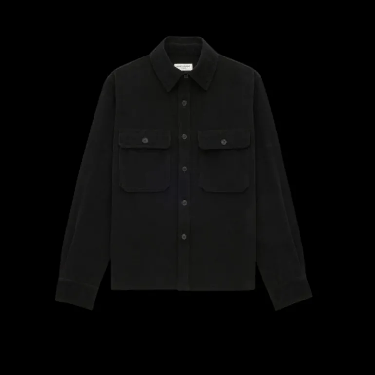 Surchemise boutons col pointe coton velours noir poches poitrine