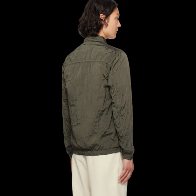 Surchemise fabriquée en Nylon Metal, un nouveau tissu irisé et écoresponsable de Stone Island. L’évolution de ce tissu emblématique intègre l’utilisation de fils régénérés ECONYL® : le nylon en fin de vie, pré et post-consommation, est recyclé par un processus complexe de dépolymérisation pour créer cette fibre qui conserve les mêmes caractéristiques intrinsèques que le nylon issu de matières premières fossiles. La pièce finie est ensuite soumise à un procédé élaboré de double teinture.