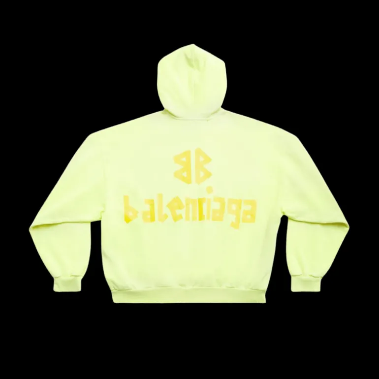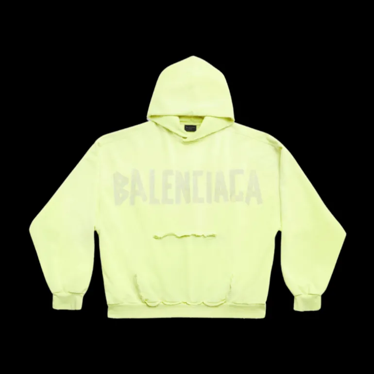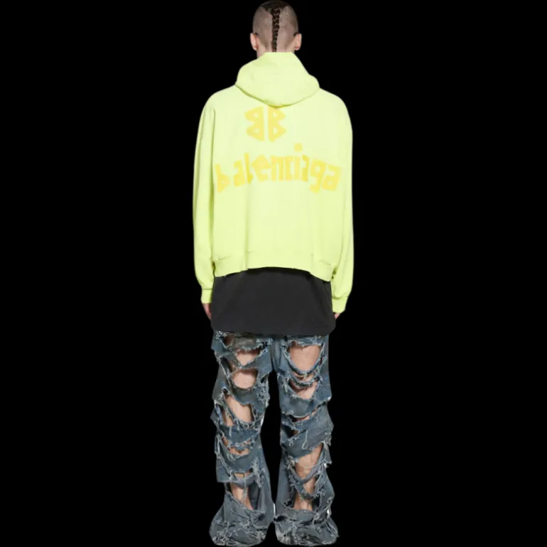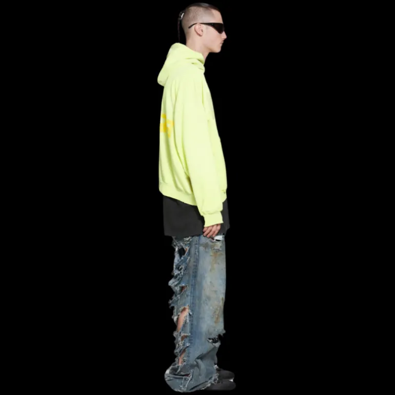 Sweat à capuche Tape Type Ripped Pocket Large Fit polaire bouclée jaune fluo