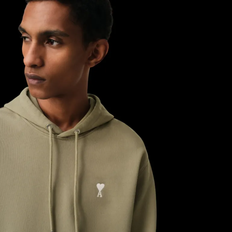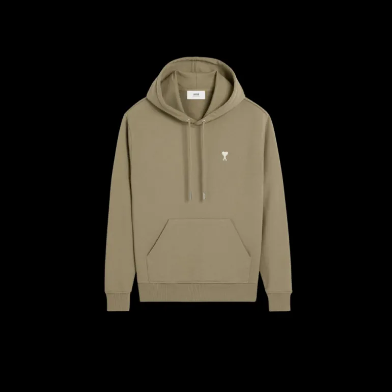Sweat-shirt à capuche Hoodie coton molleton kaki cœur blanc