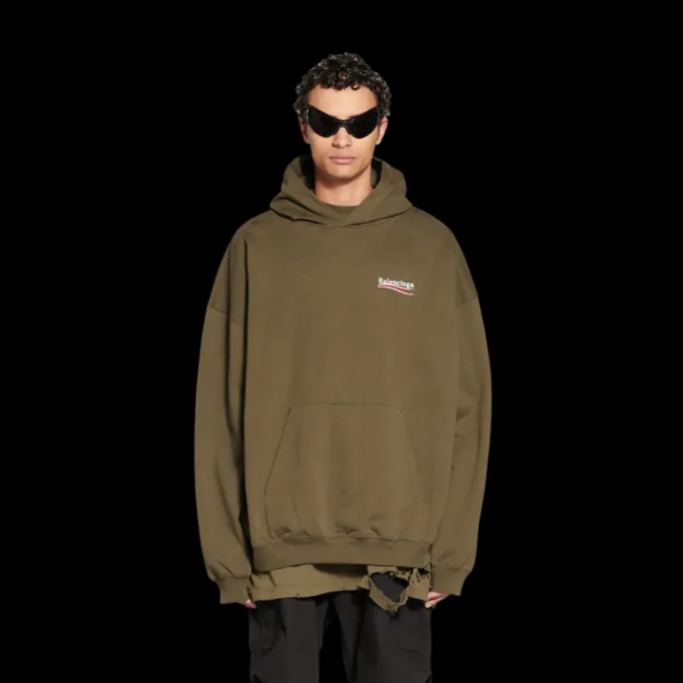 Sweat-shirt à capuche molleton coton kaki Vague Political Campaign