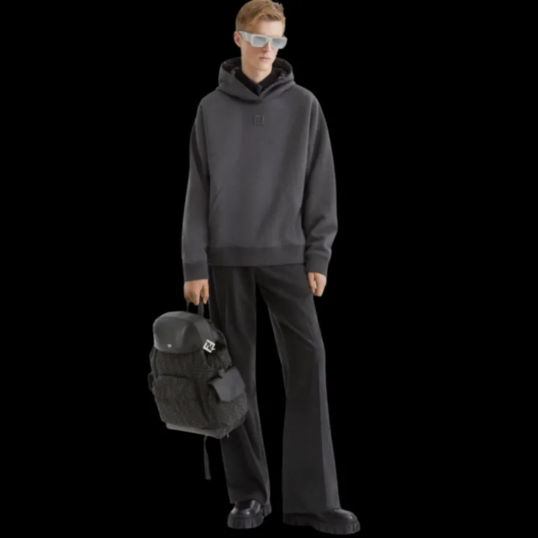 Sweat-shirt à manches longues et capuche avec cordon de serrage. Poche kangourou sur le devant. En 100 % coton gris foncé avec intérieur FF dans les tons gris clair et noir. Logo FF brodé dans le ton sur le devant.