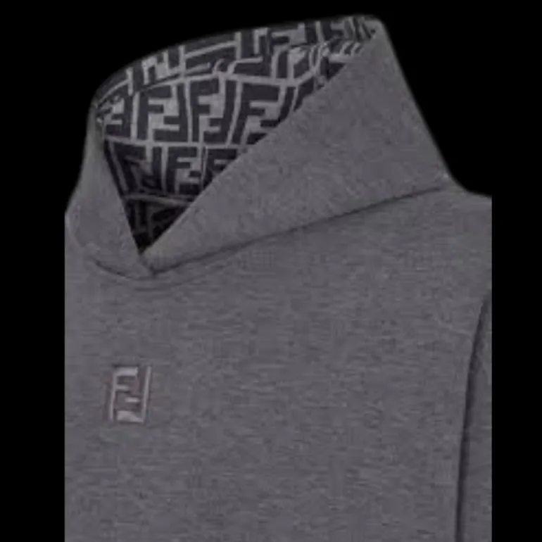 Sweat-shirt à capuche coton gris foncé broderie logo FF