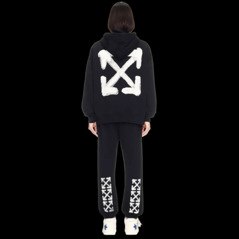 Sweat-shirt à capuche coton noir Spray Arrow blanc
