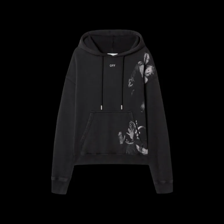 Sweat-shirt à capuche hoodie coton noir délavé imprimé Mary