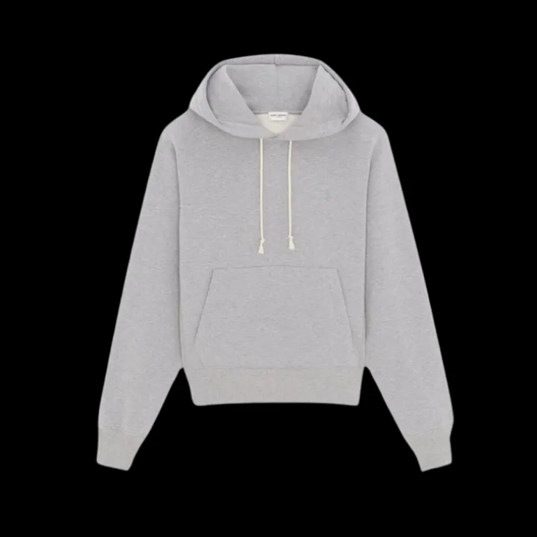 sweat-shirt à capuche en molleton de coton biologique, muni d’une poche kangourou et orné du cassandre brodé ton sur ton sur la poitrine.