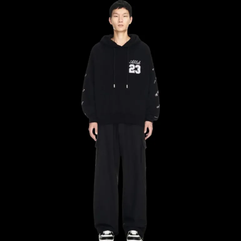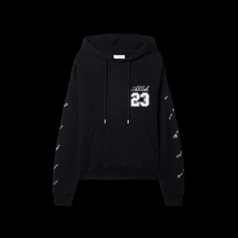 Sweat-shirt capuche coton noir V.Abloh 23 blanc