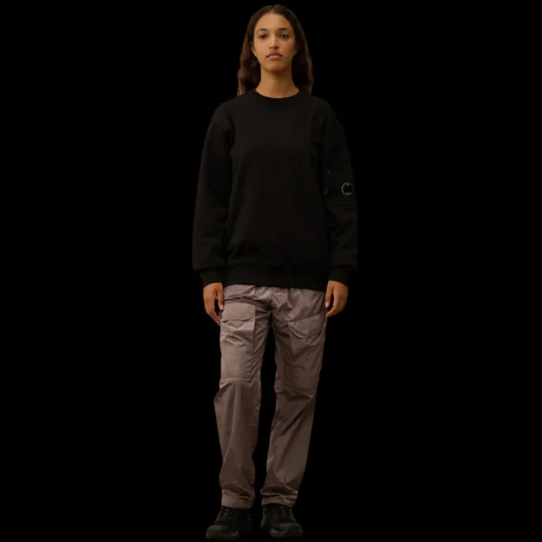 Sweat-shirt ras du cou coton tissage diagonal noir