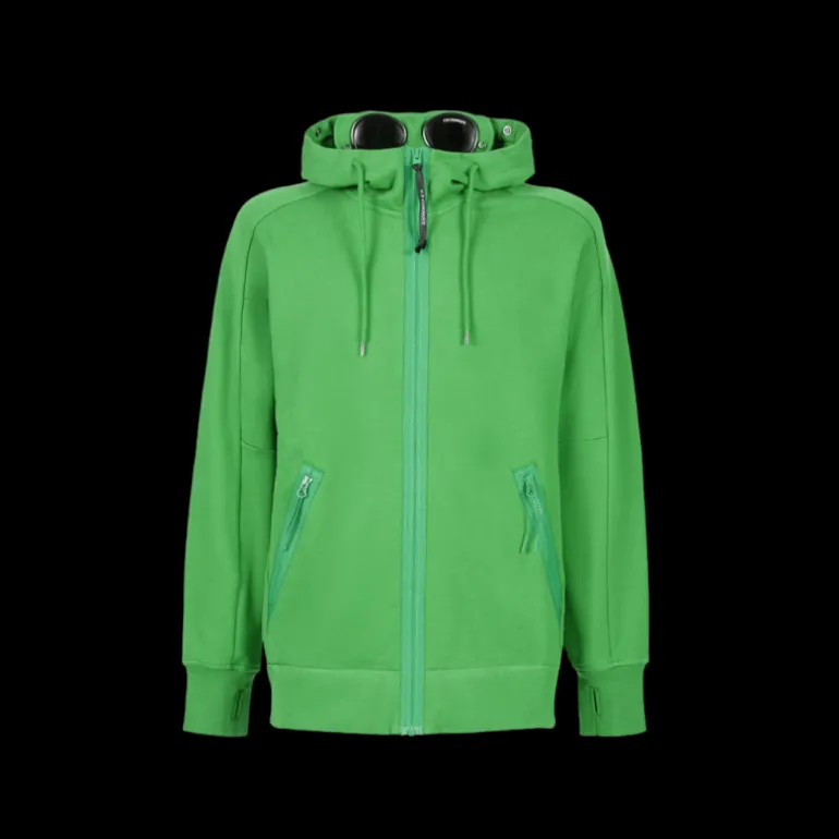 Ce sweat-shirt à capuche présente une fermeture zippée sur toute la longueur, des poches sécurisées en biais pour les mains et la célèbre capuche réglable Goggle Hood de C.P. Company avec ses lunettes intégrées. Modèle confectionné dans notre molleton en relief diagonal, un coton bouclé mi-épais offrant un confort absolu et une grande robustesse.