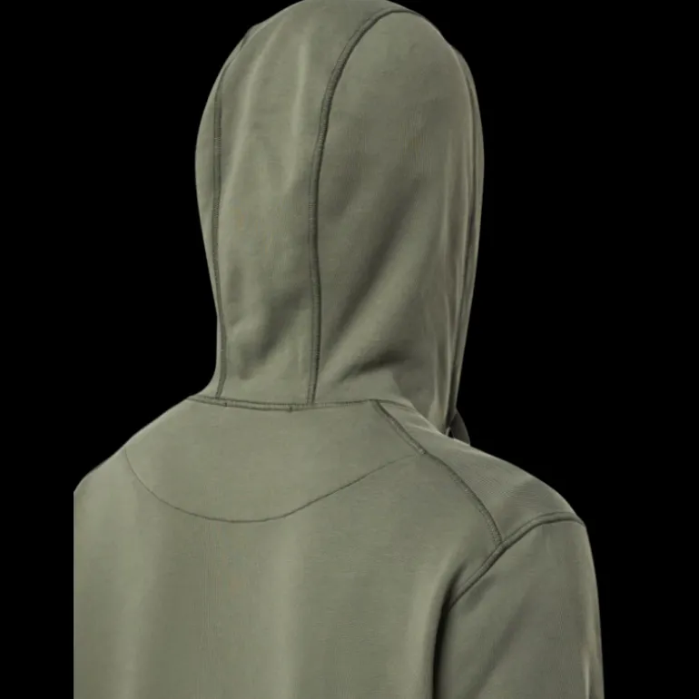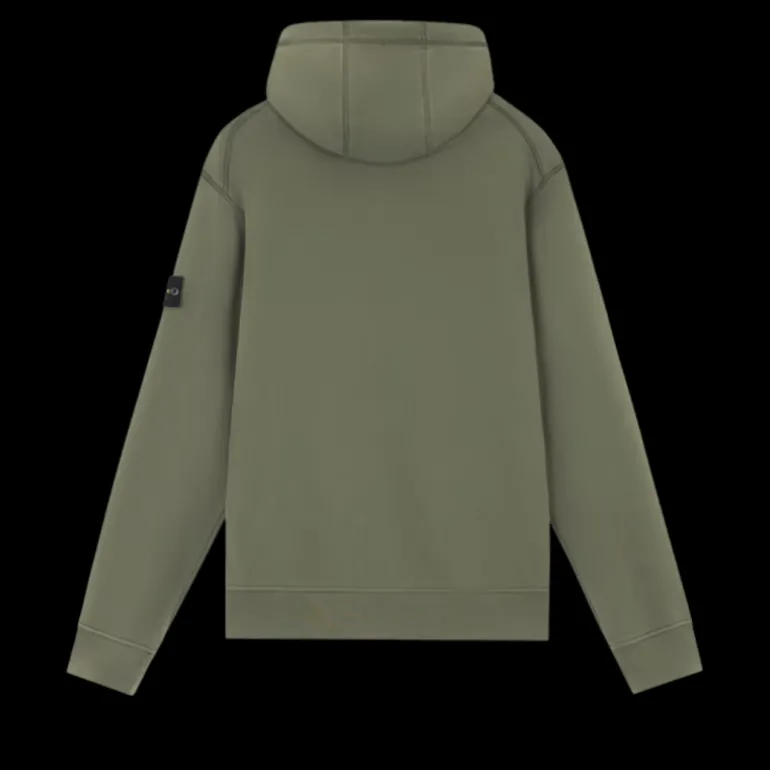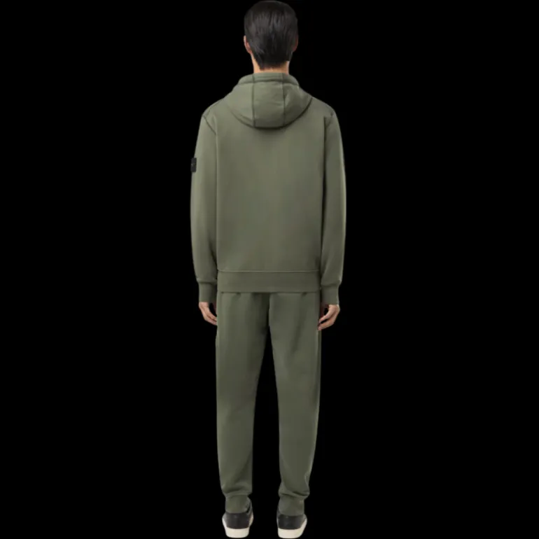Capuche avec cordon de serrage. Poches plaquées avec ouverture oblique. Écusson Stone Island sur la manche gauche. Dans le dos, sous l’encolure, dos du pied de col doublé. Coutures surjetées. Poignets et bande inférieure côtelés. Fermeture zippée. Coupe classique