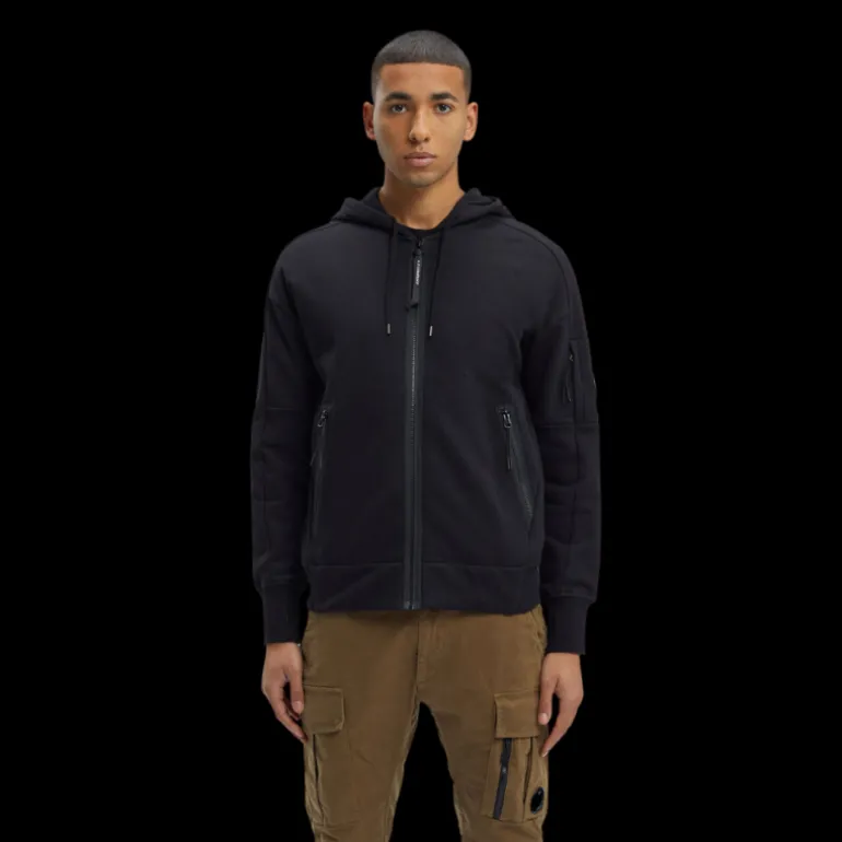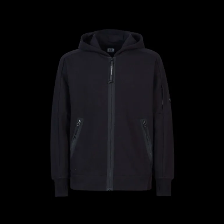 Sweat-shirt avec une capuche réglable, logo et fermeture entièrement zippée. Ce modèle présente également des poches latérales zippées en biais, le détail en forme de verre de lunette C.P. Company ainsi que des poignets et un ourlet côtelés. Confectionné dans une polaire en relief diagonal, un type de coton bouclé d’épaisseur moyenne offrant un confort absolu et une grande robustesse.