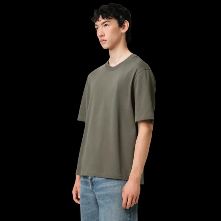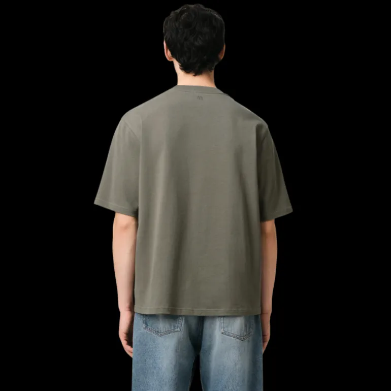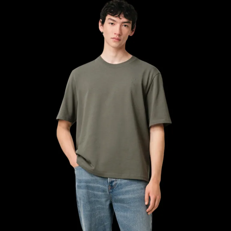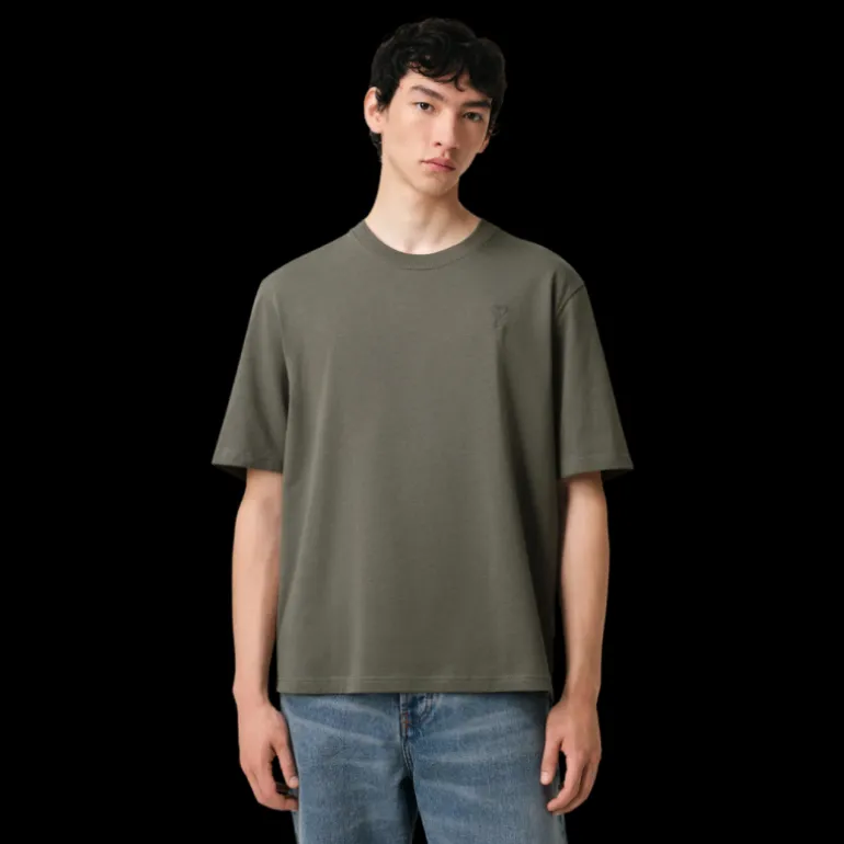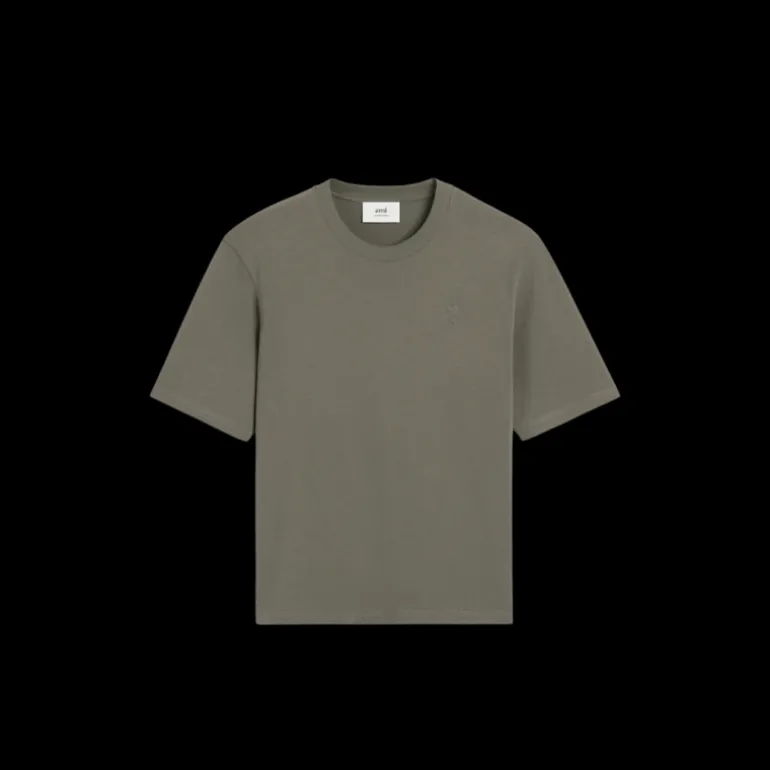 T-shirt col rond jersey de coton bio gris vert broderie cœur ton sur ton