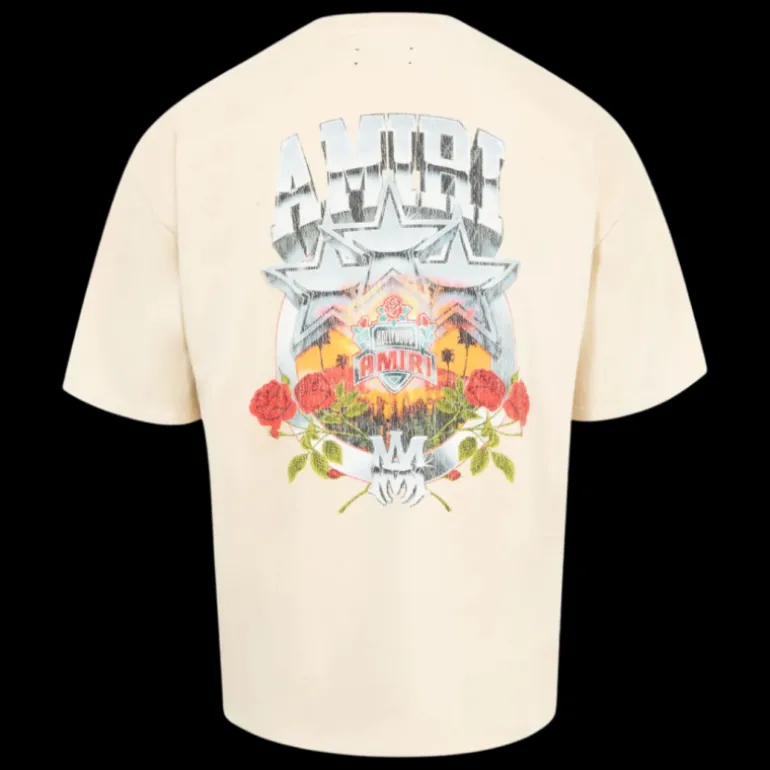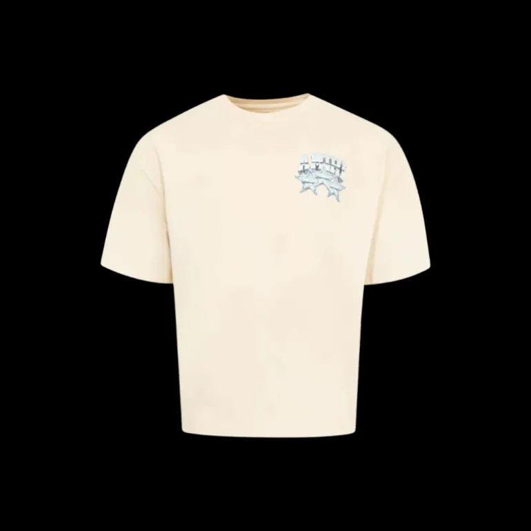 T-shirt col rond Championship coton beige imprimé étoiles