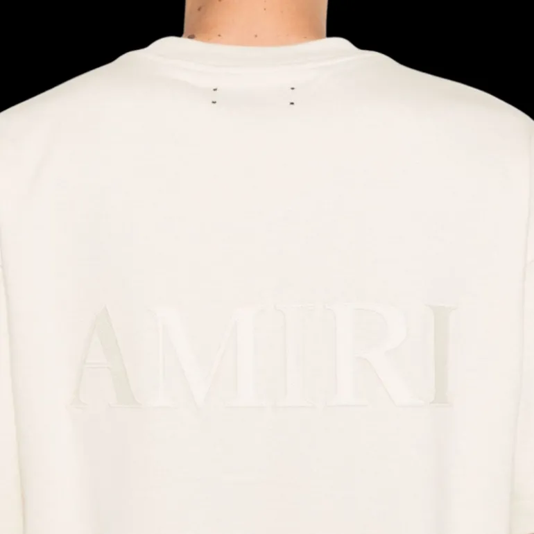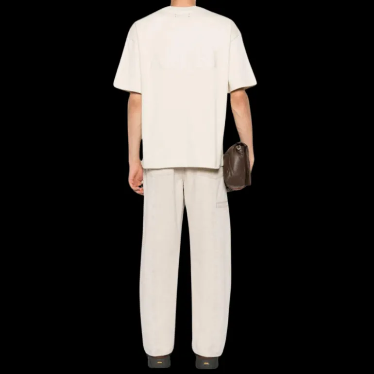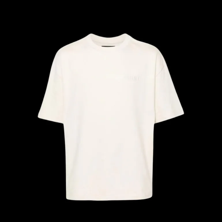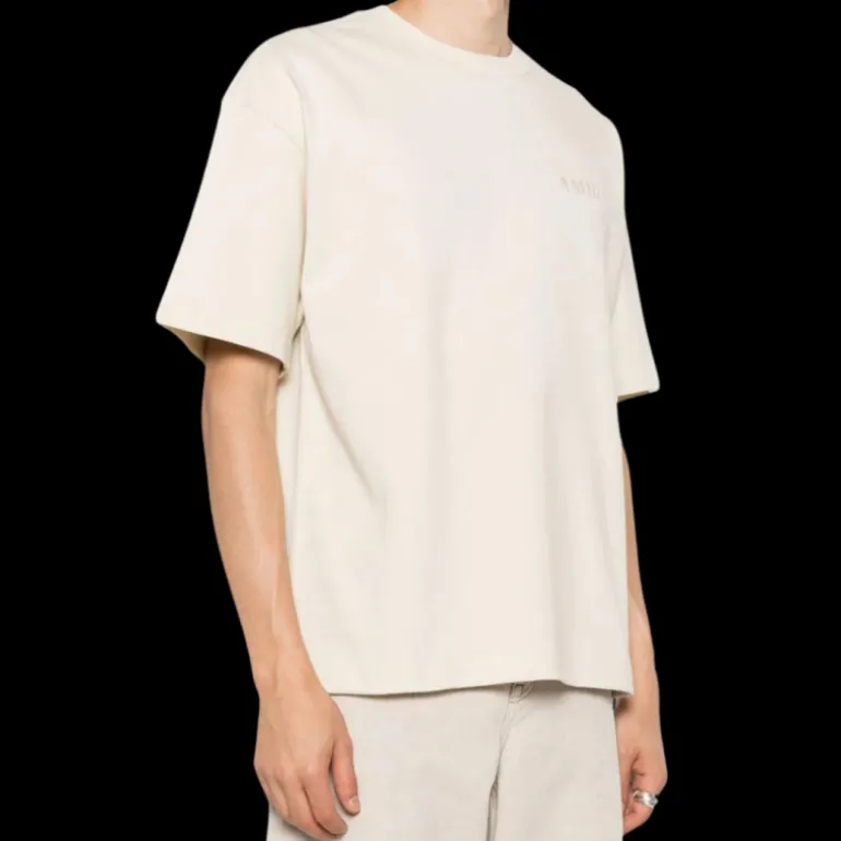 t-shirt col rond coton écru logo brodé poitrine dos ton sur ton