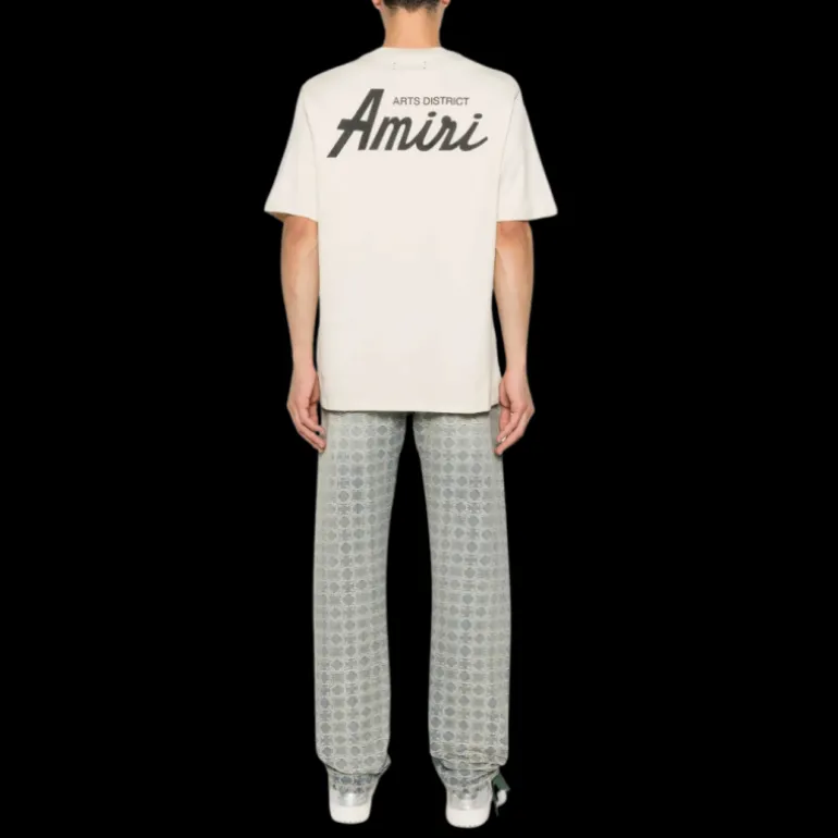t-shirt col rond coton jersey beige imprimé City logo floqué noir