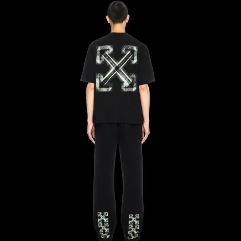 T-shirt col rond coton noir logo tampon flèche floue dos