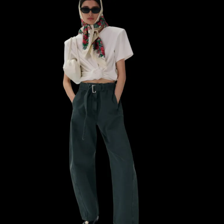 Le t-shirt côtelé classique de Magda présente un détail noué sur le devant et des épaulettes amovibles.