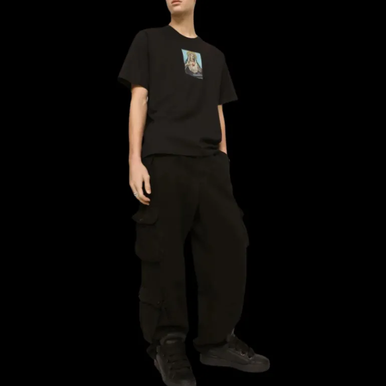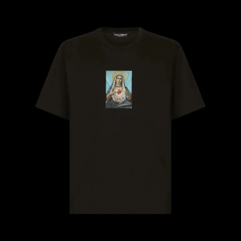 T-shirt col rond coton imprimé graphique Vierge Strass