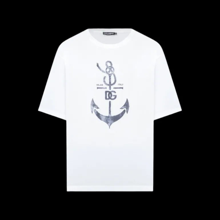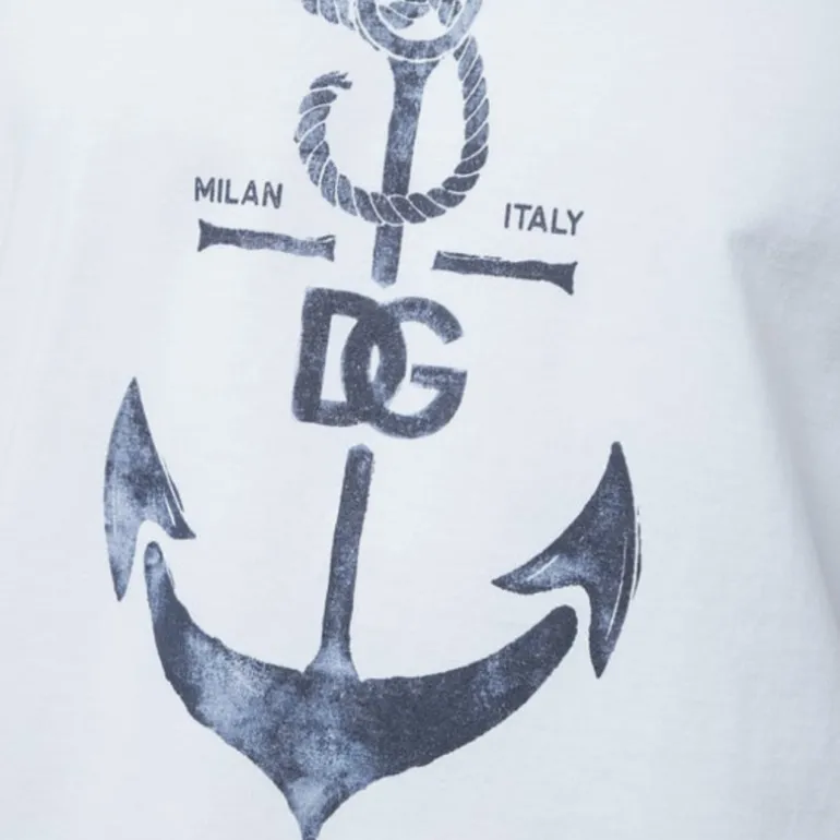 T-shirt manche courte coton blanc ancre marine logo dg